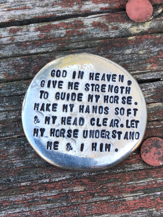 Pewter pebbles make a great gift for the equestrian who has everything! The Horseman's Prayer kept in the pocket of their britches will bring good luck at all those important events.