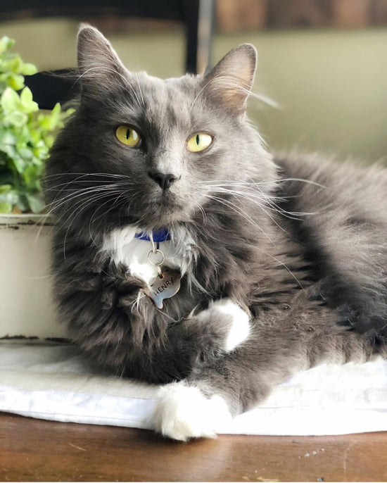 Henry is donning our "Lil Fish" tag and looking quite handsome. He loves the fact that our tags are sturdy but lightweight for comfort.
